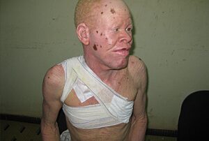 Prosper Kalmogo is een 52-jarige albino man uit Burkina Faso die een behandeling tegen huidkanker ondergaat.